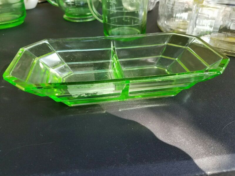 Title (ebay affiliate link): Hazel Atlas Green Depression Glass Divided Relish/Candy Dish