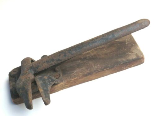 Antique Blacksmith Cast Iron Tool Vice Mounted on Wood OLD