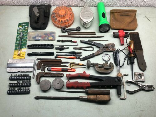 Huge Junk Tool Lot Bits Glass Cutters Pouches Flashlights Pipe +more 94pcs