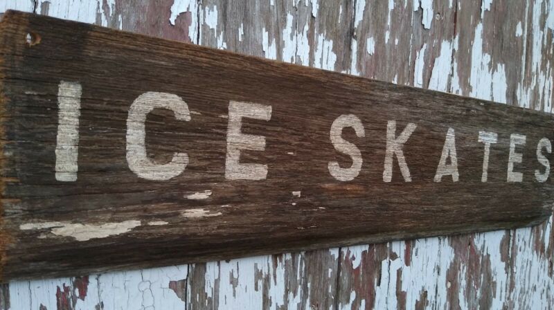 Title (ebay affiliate link): Old early Primitive antique farm chippy Barn wood ICE SKATES sign holiday snow