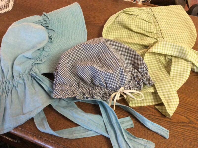 Old Primitive Peg Rack Gingham & Plain Prairie Sun Hats Bonnets Cabin Farmhouse