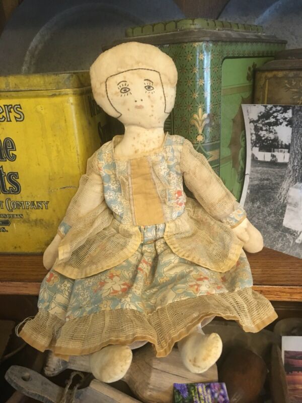 Title (ebay affiliate link): BEST AAFA early girl rag Doll Antique embroidery face original dress primitive