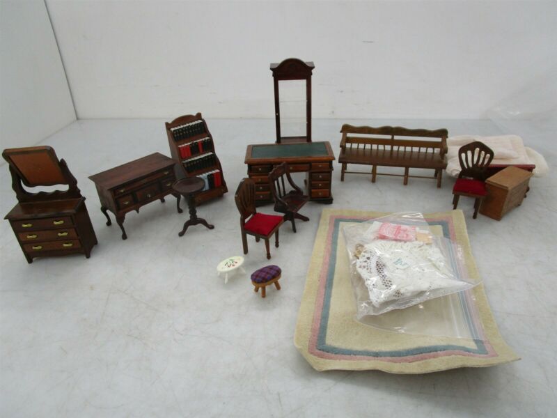 16x Lot Vintage Wooden Dollhouse Furniture - Bed, Dresser, Desk++