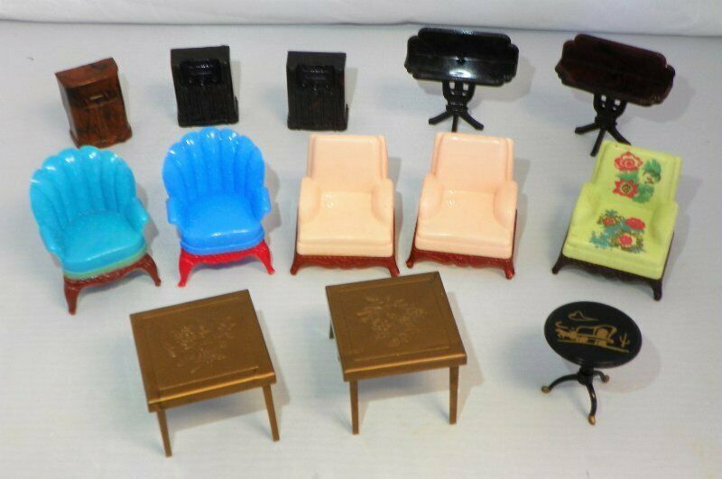Renwal Ideal Plasco Vintage Dollhouse Furniture CHAIRS CONSOLE RADIO TABLES 1:16
