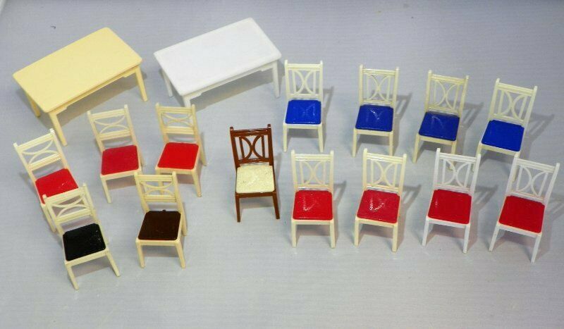 Renwal TABLES AND KITCHEN CHAIRS Vintage Tin Dollhouse Furniture Ideal Miniature