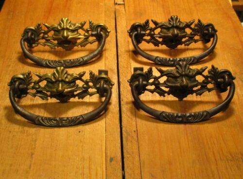 Four Vintage Brass Lion Head Drawer Pull Victorian Furniture Hardware