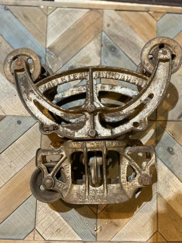 Title (ebay affiliate link): Hay Trolley, Barn Trolley, Beatty Brothers, Maple Leaf, cast iron antique