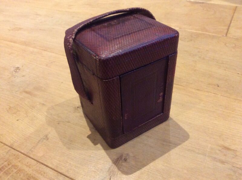 Antique Leather Travel Carriage Clock Case Purple Velvet Lining, Handle