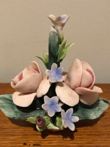 VINTAGE CAPODIMONTE ROSE FLOWER BASKET 4" x 5" ITALY