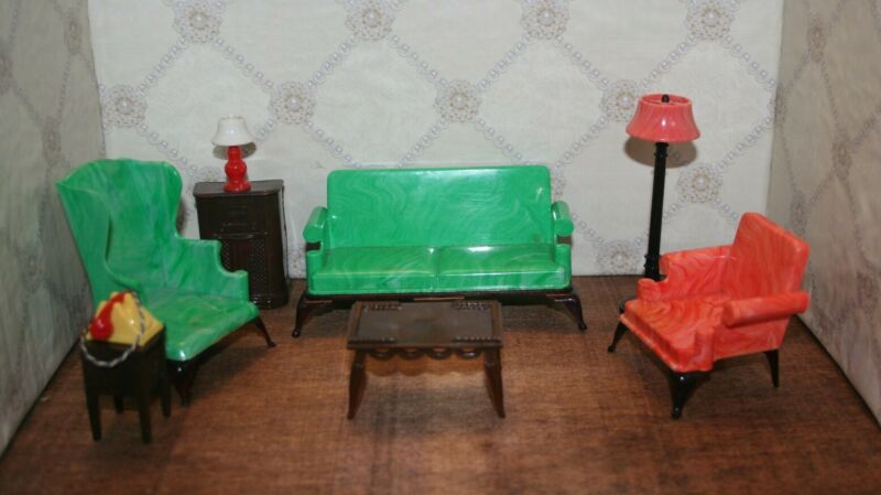 Title (ebay affiliate link): Ideal 9 PC LIVING ROOM SET Vintage Dollhouse Furniture Renwal Plastic 1:16 RETRO