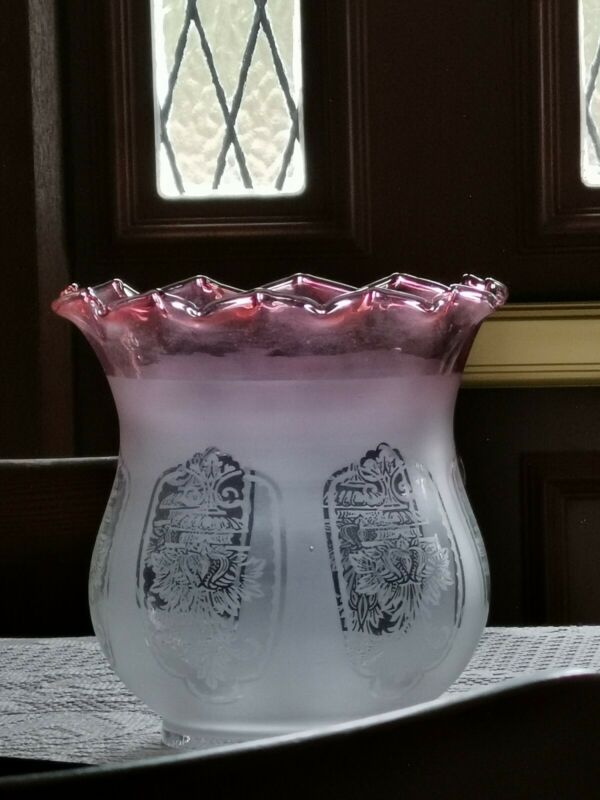 Title (ebay affiliate link): STUNNING ACID ETCHED FOLIATE PANEL OIL LAMPSHADE CRANBERRY/CLEAR - TWIN DUPLEX