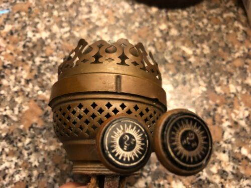 Used vintage Brass Paraffin Oil Lamp Double Porcelain Burner & Wick