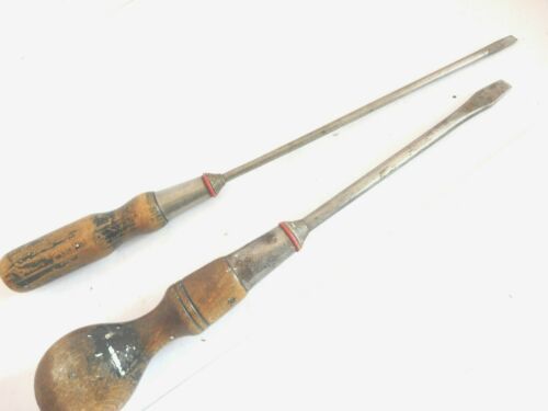 Title (ebay affiliate link): 2 VINTAGE STANLEY FLAT HEAD WOODEN HANDLED CARPENTERS SCREWDRIVERS No45 & 25c
