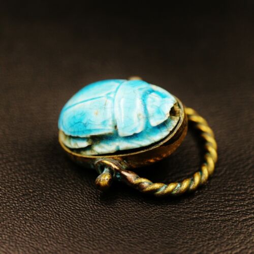 Title (ebay affiliate link): Unique Antique Copper Ring with Glazed Scarab Beetle Amulet of Ancient Egyptian