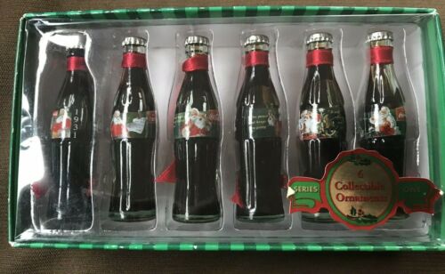 Title (ebay affiliate link): Coca Cola Miniature Santa Glass Bottles Evolution of the Coca Cola Santa Set NIB