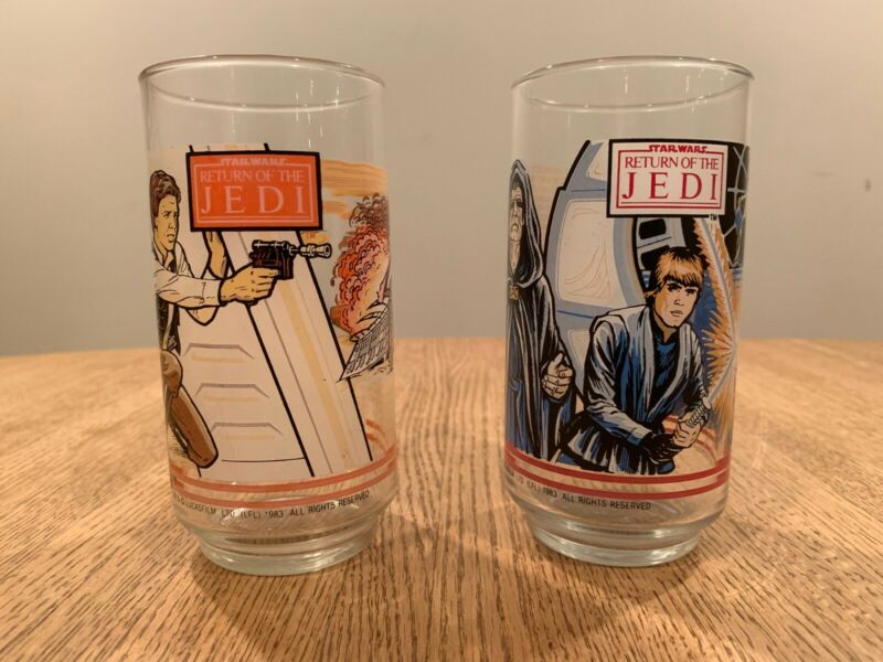 Title (ebay affiliate link): Two Vintage Star Wars Return of the Jedi Burger King Glasses 1983 Coca-Cola Coke
