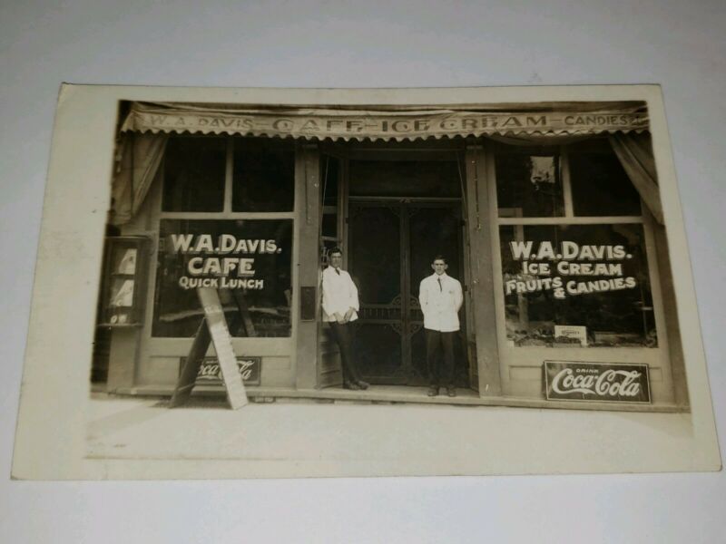 Title (ebay affiliate link): c. 1915 RPPC W.A. Davis Cafe/Ice Cream/Friuts/Candies/Drink Coca-Cola Post Card