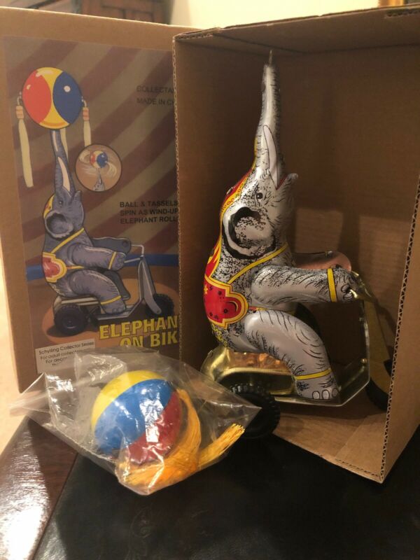 Elephant On Bike Schylling Tin Toy Wind Up NIB
