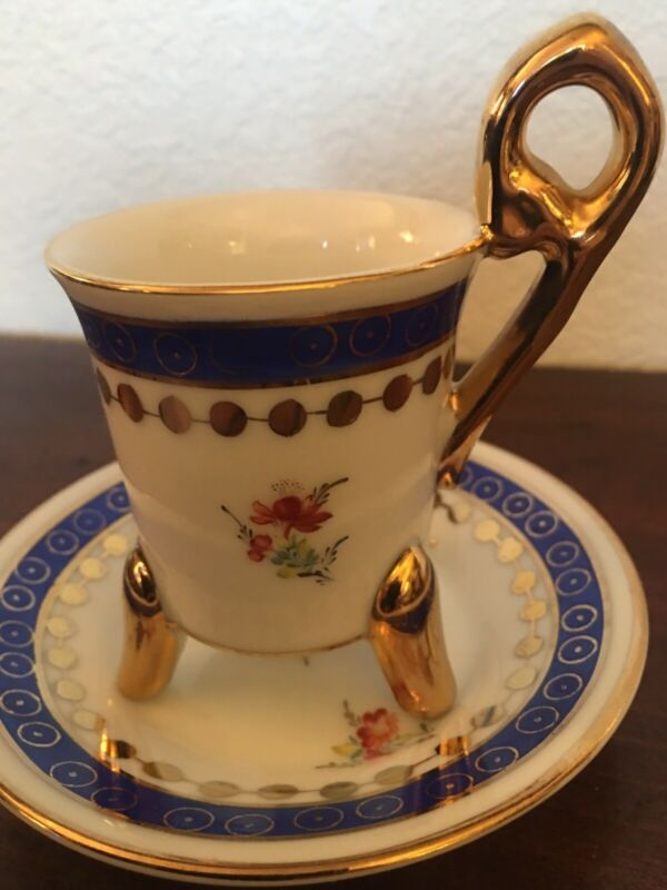 Exquisite Vintage KPM Demitasse Cup & Saucer gold-blue floral Hand-painted Trim