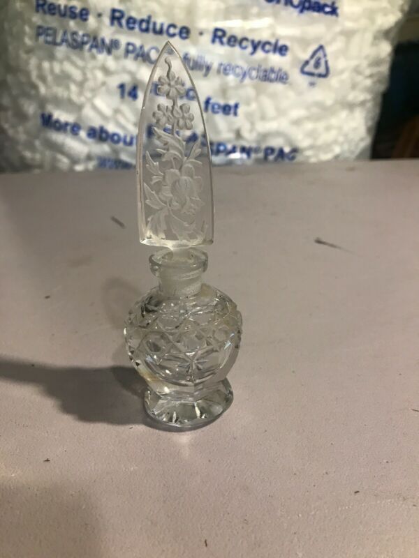 Antique Cut Crystal Perfume Bottle Czechoslovakia Stunning Grandmothers Flowers