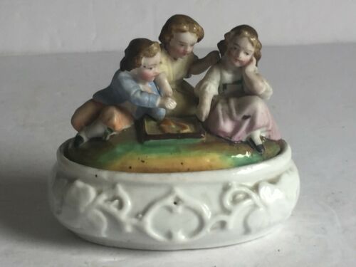 Antique VIctorian English German Porcelain Figural Covered Box CHILDREN PLAYING