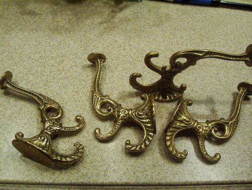 (4) Antique Vintage Heavy Ornate Brass Victorian Style Coat Hanger Hooks NICE!!