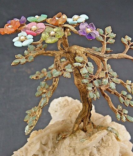 Title (ebay affiliate link): 7"H wire BONSAI TREE sculpture of pearls jade amethyst turquoise white quartz