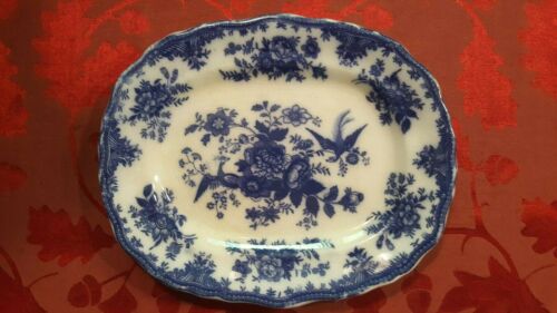 ASIATIC PHEASANTS 1895-1910 MK OVAL PLATTER T.H. & SON FLOW BLUE THOMAS HUGHES