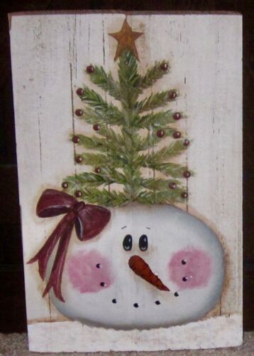 Title (ebay affiliate link): *~*PRIMITIVE*~* HP FOLK ART PRIM SNOWMAN *~* TREE W/BERRIES *~* RECLAIMED WOOD