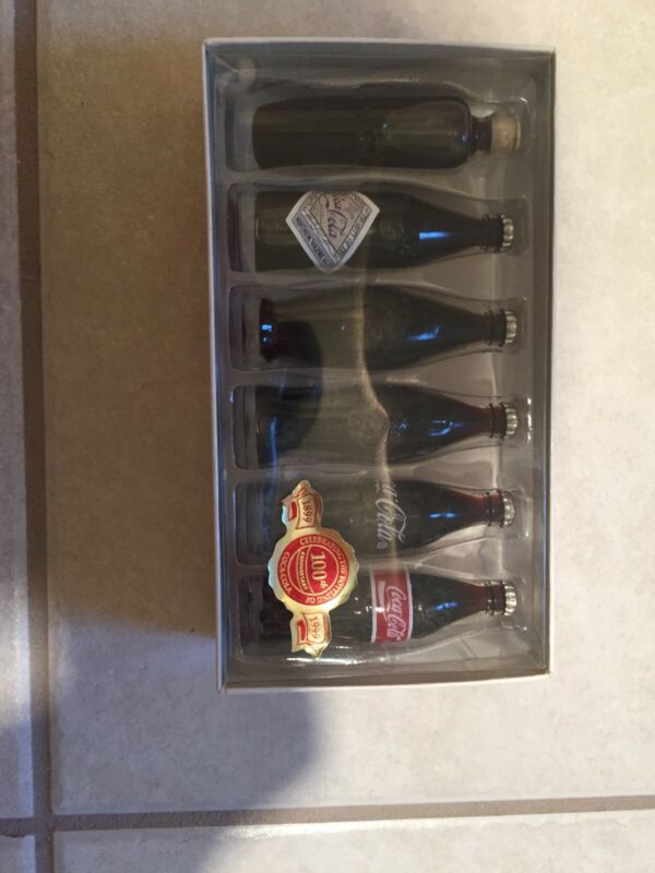 Title (ebay affiliate link): Evolution of the Coca Cola Contour Bottle Mini Bottle Anniversary Set 1998 Coke