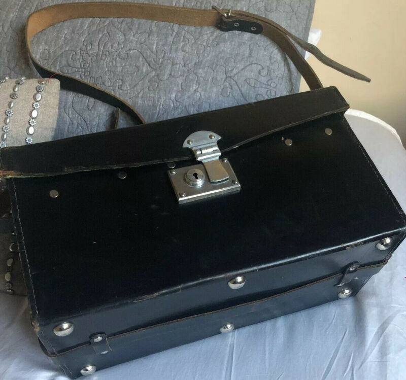 Title (ebay affiliate link): Vintage Black Leather Tool Art/Storage Box with Long Strap WORKING LATCH No Key