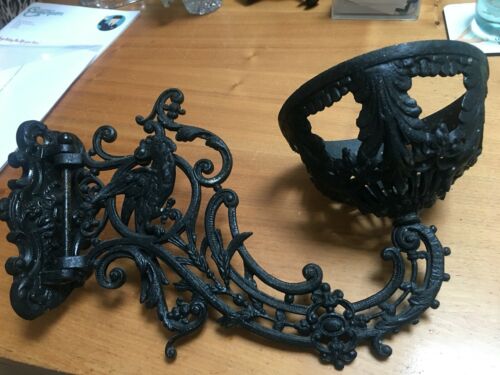 pair of heavy cast iron black oil lamp brackets