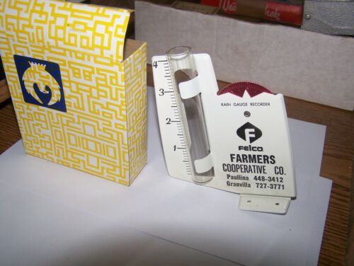 VINTAGE RAIN GAUGE IOWA ADVERTISING FELCO FARMERS COOP PAULLINA GRANVILLA IA.