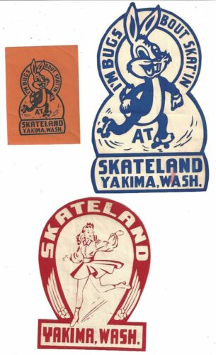 (3) Vintage 1950 SKATELAND ROLLER SKATING RINK Stickers - YAKIMA, WASHINGTON
