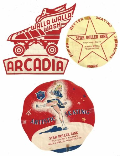 (3) Vintage 1950 ROLLER SKATING RINK Stickers - WALLA WALLA, WASHINGTON