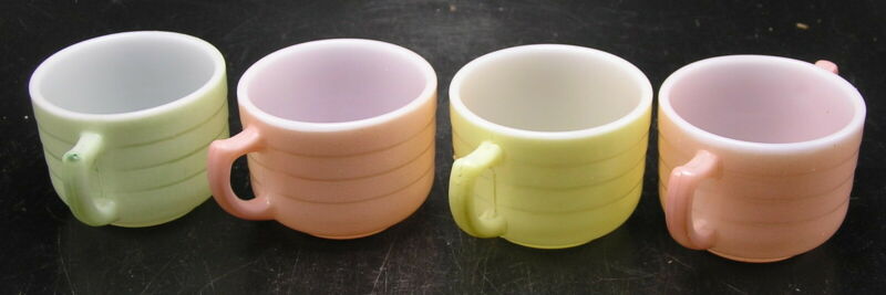4 Pcs 1950s Pastel Coloured Little Hostess Set - Milk Glass, Sugar Bowl, 3 Cups