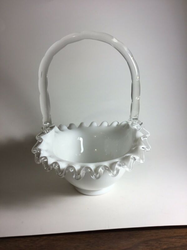 Fenton Milk Glass Silver Crest Glass Basket Vase
