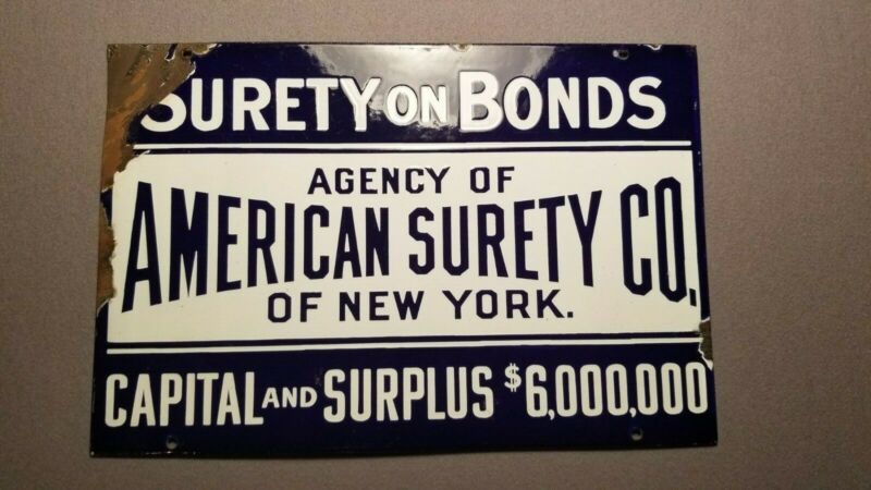 Title (ebay affiliate link): surety on bonds agency of american surety co ny porcelain sign