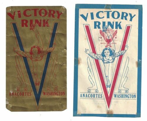 (2) Vintage 1950 ROLLER SKATING RINK Stickers - ANACORTES, WASHINGTON