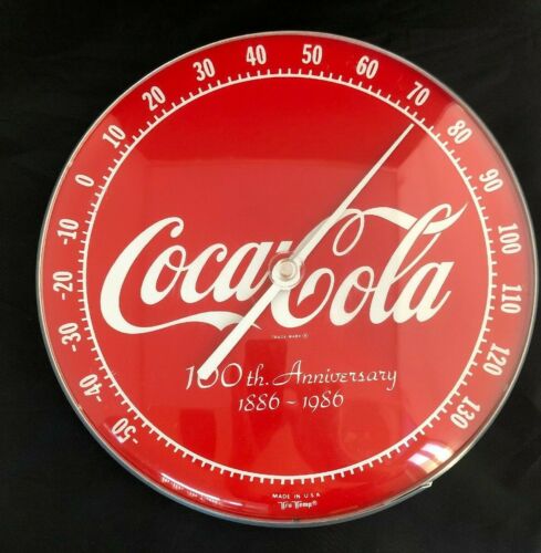COCA COLA ROUND 12" THERMOMETER 100TH ANNIVERSARY 1986 TRU TEMP MADE USA (M6)