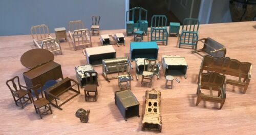 Vintage Tootsie Toy Metal Dollhouse Furniture Miniatures Large Lot