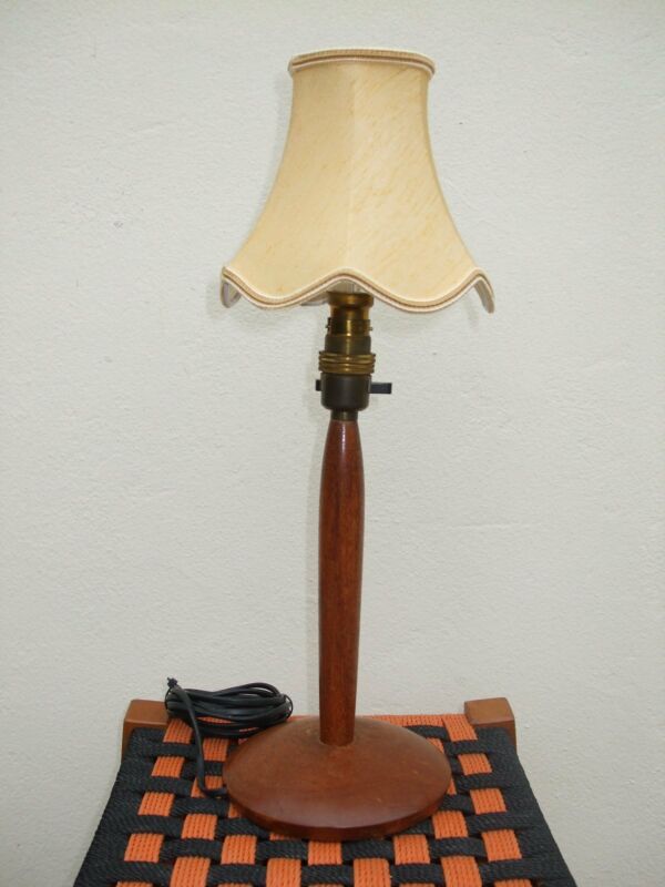 VINTAGE RETRO ROUND WOODEN LAMP WITH CREAM SHADE