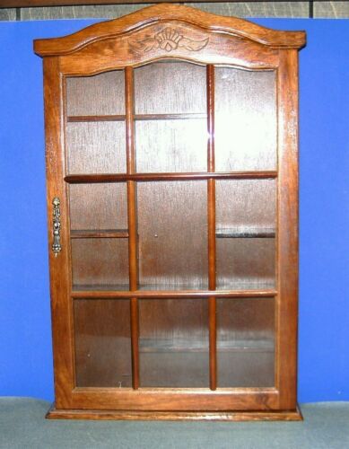Title (ebay affiliate link): Wall Hanging 21&1/4 X12&3/4" X 3" Curio Cabinet Glass Door Redwood Stain