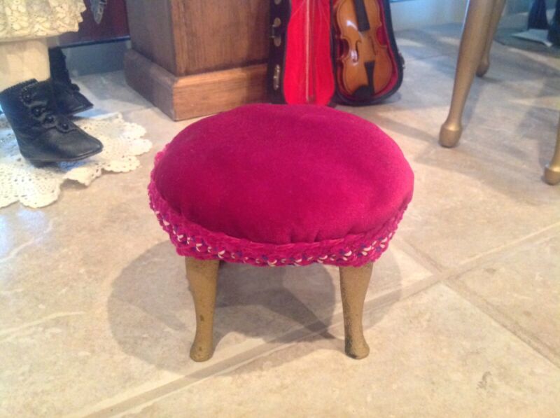 Title (ebay affiliate link): Vintage Minature doll Stool metal Legs 5" high 6" wide Cranberry Velvet