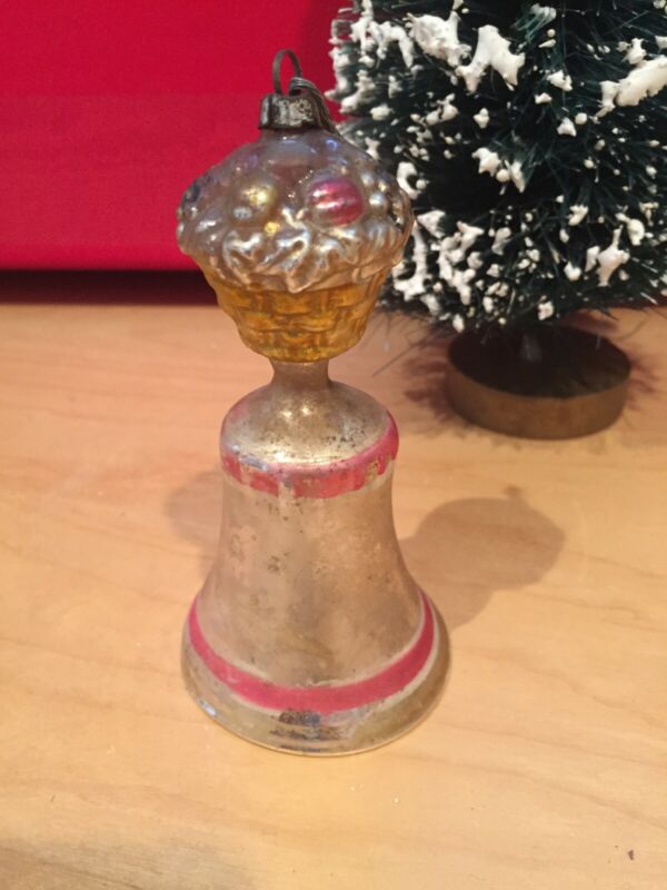 Antique German Mercury Glass Bell Topped Basket Ornament