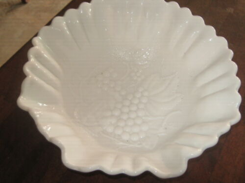 IMPERIAL MILK GLASS Ruffled Edge BOWL, grape/leaf pattern
