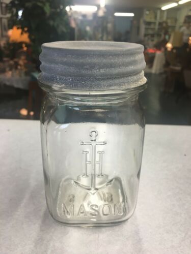 Title (ebay affiliate link): Vintage Glass Anchor Hocking Pint Mason Jar with Zinc milk glass cap #3 #13 #43