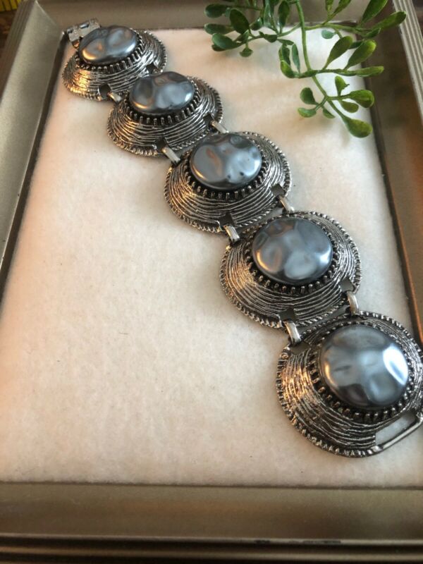 Title (ebay affiliate link): Vintage Antique Unmarked Selro Selini Gray Baroque Bead Chunky Panel Bracelet