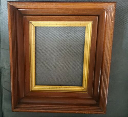 Antique DEEP WIDE Walnut Picture Frame Gold Insert 3.25" WIDE 3" DEEP