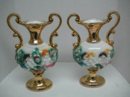 Title (ebay affiliate link): 2 Vtg Fabulous Italian Hand Painted Floral Porcelain 12.5" VASES pair Cherubs